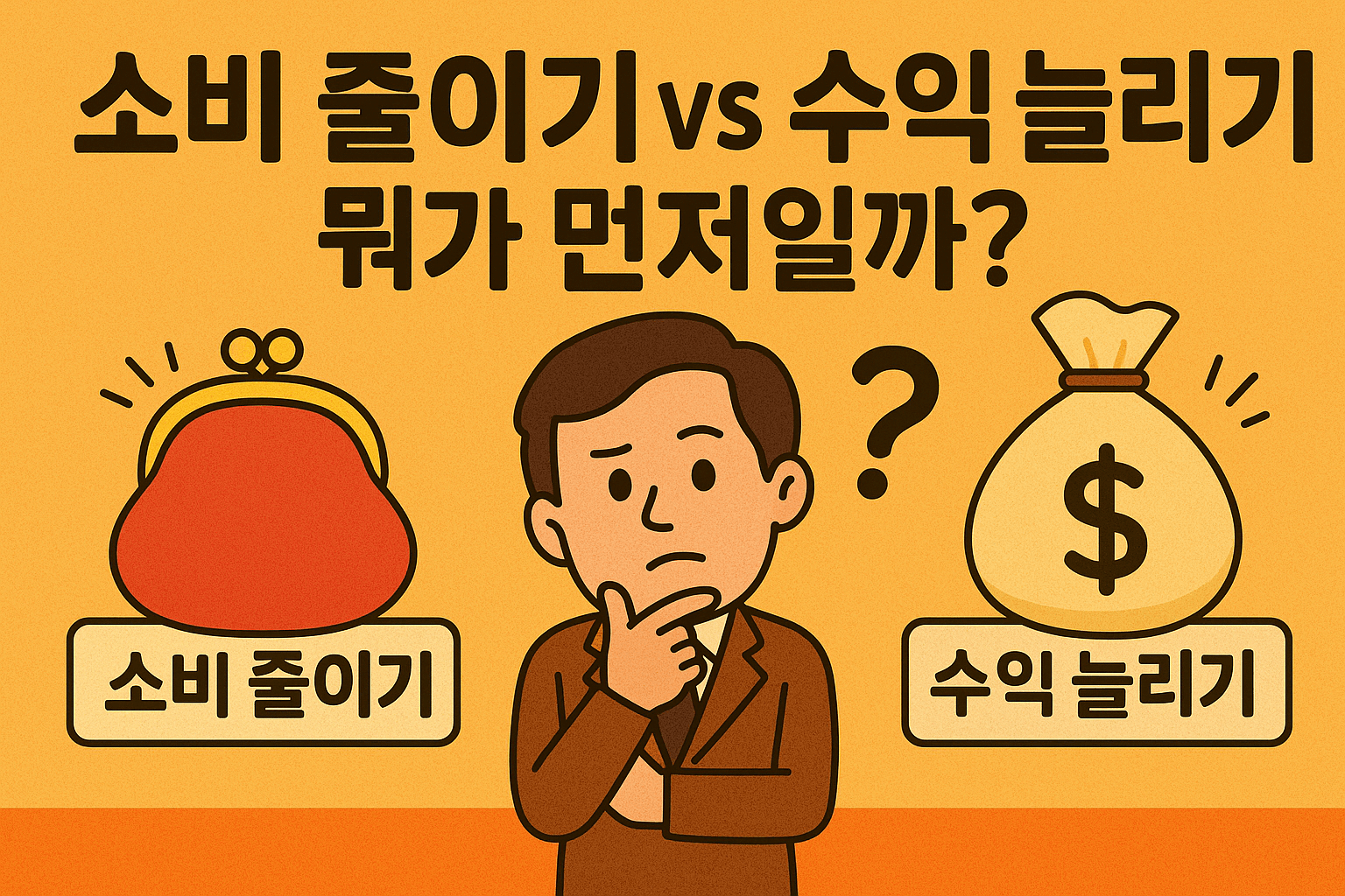 소비 줄이기와 수익 늘리기는 서로 대립하는 전략이 아닙니다. 오히려 함께 가야 자산 형성이 가능해집니다. 하지만 현실적으로 무엇을 먼저 실천해야 할지는 상황에 따라 달라집니다.